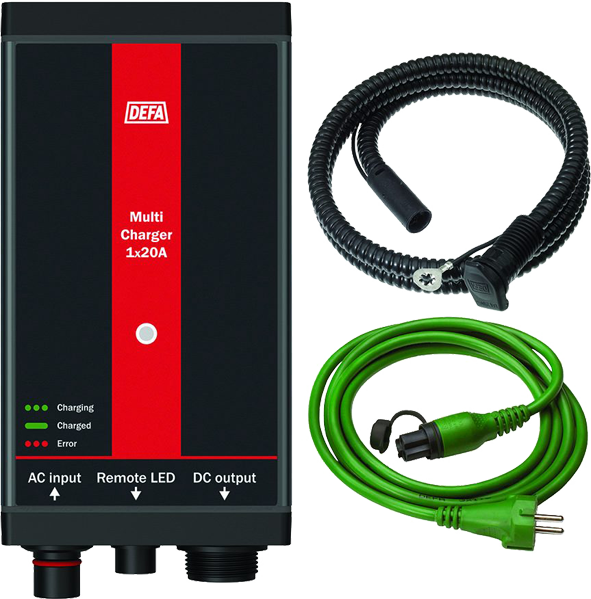 DEFA MultiCharger 1x20A är en kraftig och kompakt laddare som är enkel att montera - till både lätta och tunga fordon.