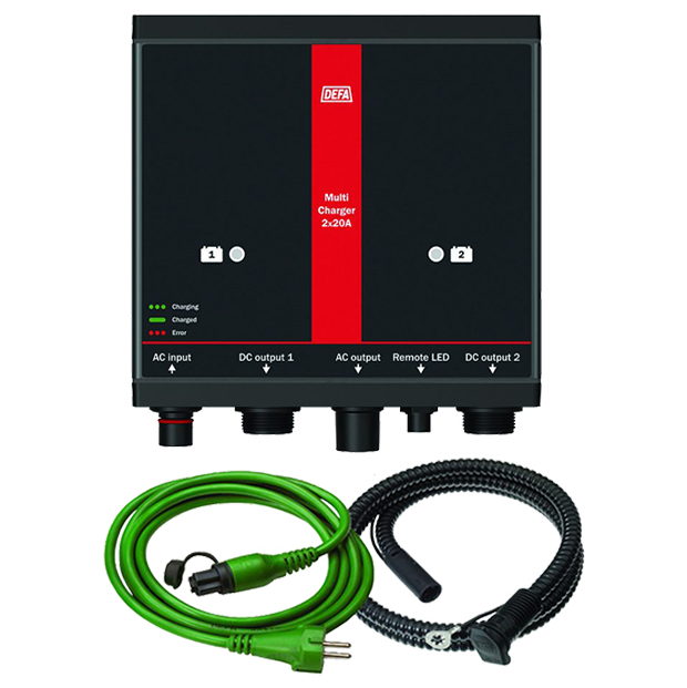DEFA MultiCharger 2x20A är en kraftig och kompakt laddare som är enkel att montera - till både lätta och tunga fordon.